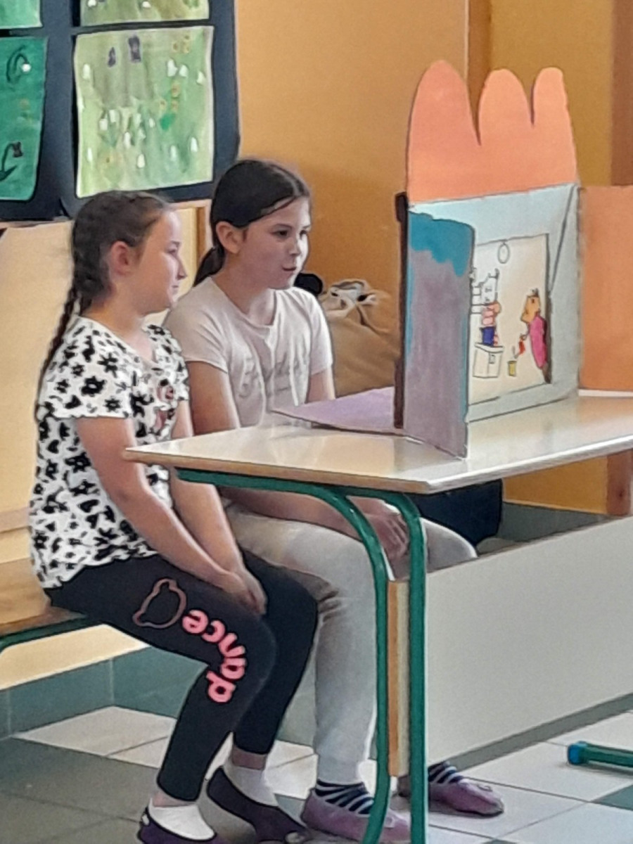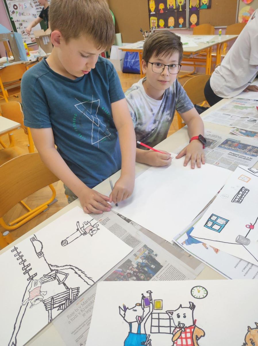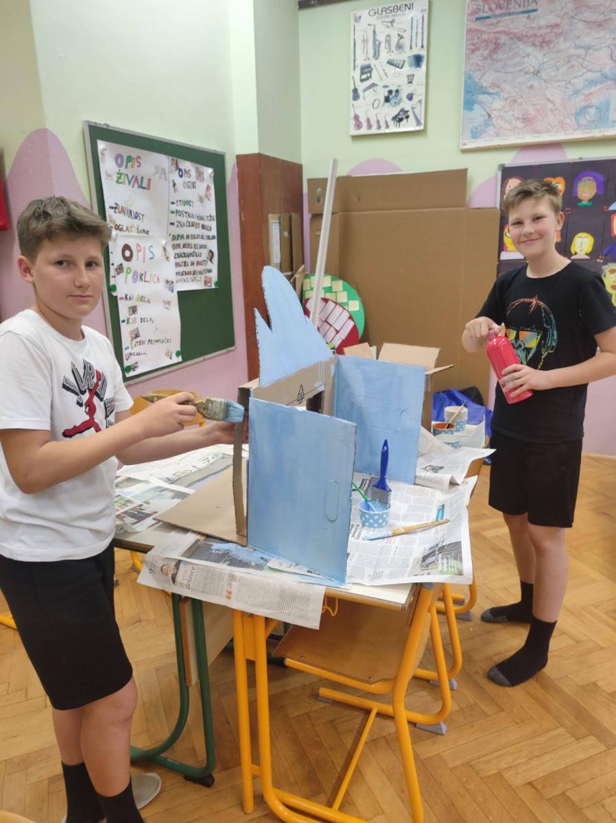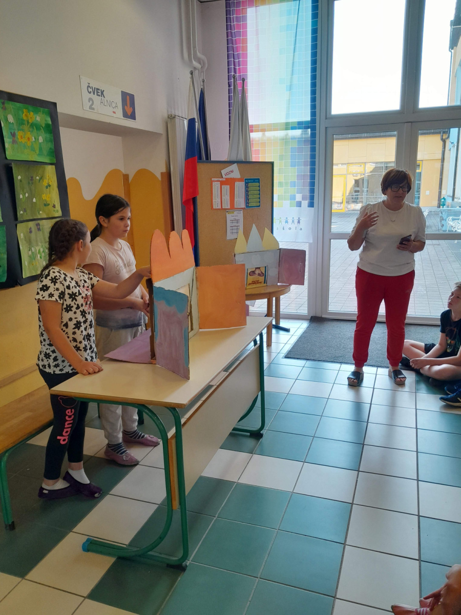 Bilo je super. Z našo skupino smo ob slikicah napisali zgodbico. Všeč nama je bilo, ko smo barvali lesene barvice ter ko smo barvali talne igre v atriju. Izza in Maruša, 6. in 5. b