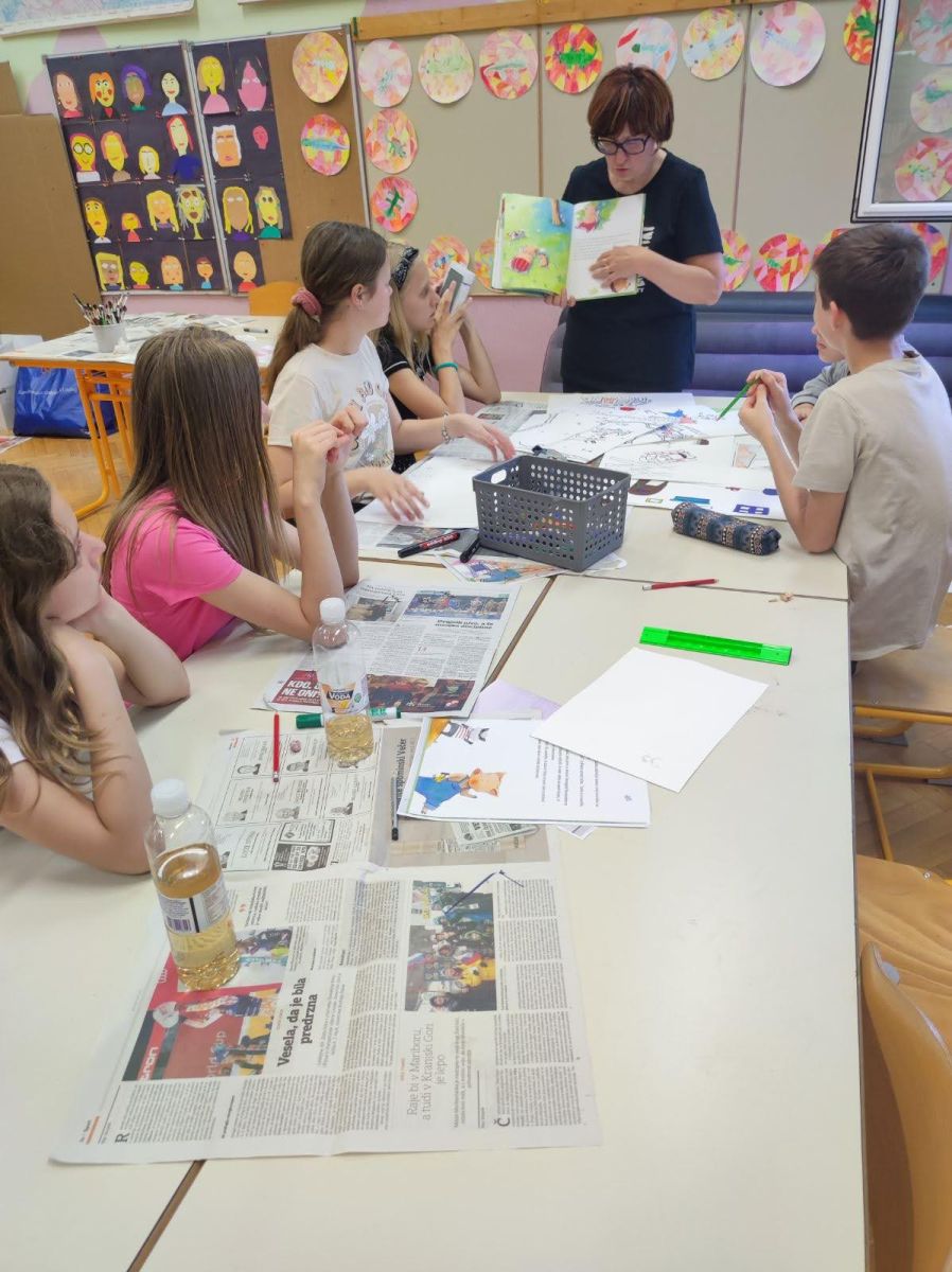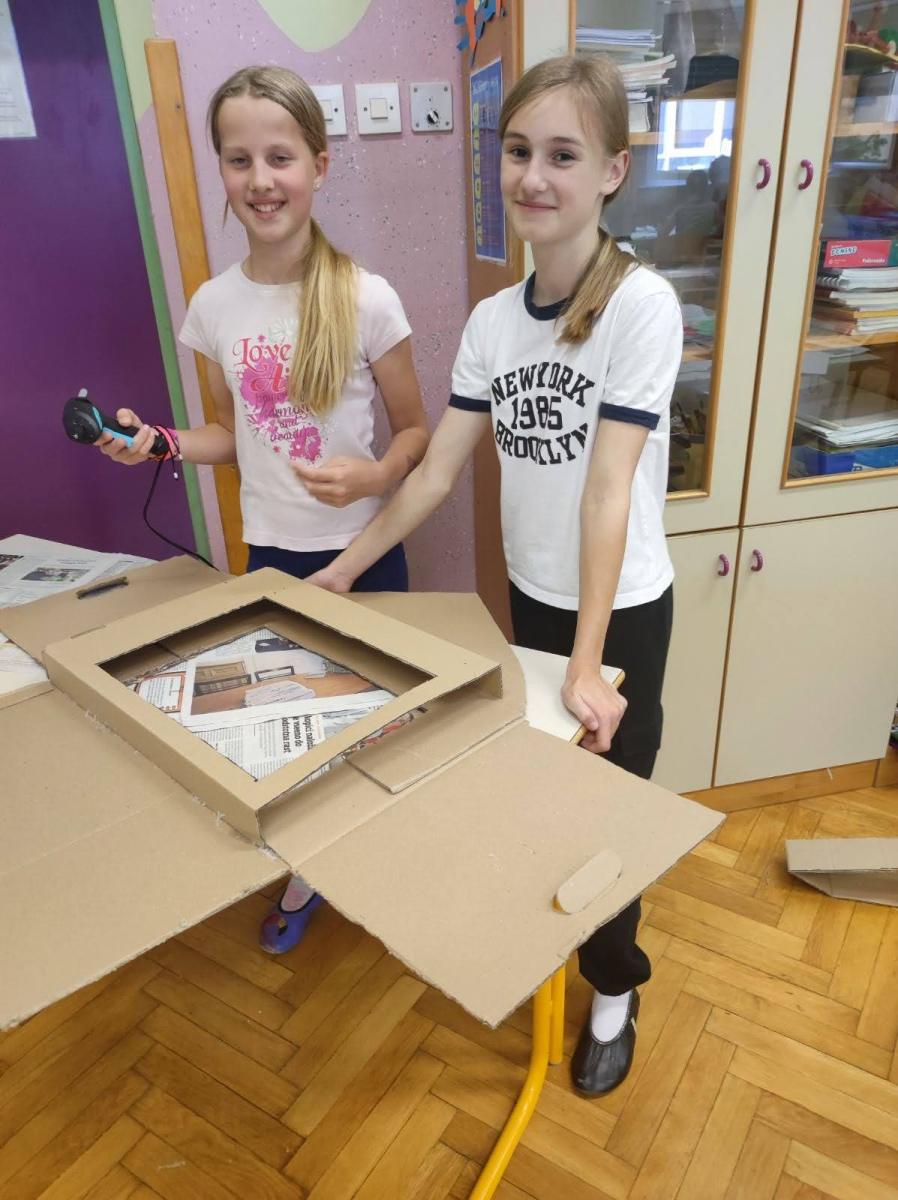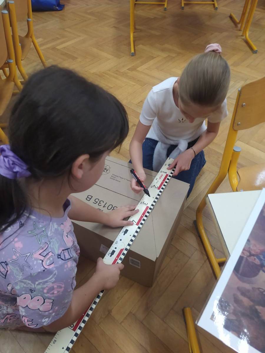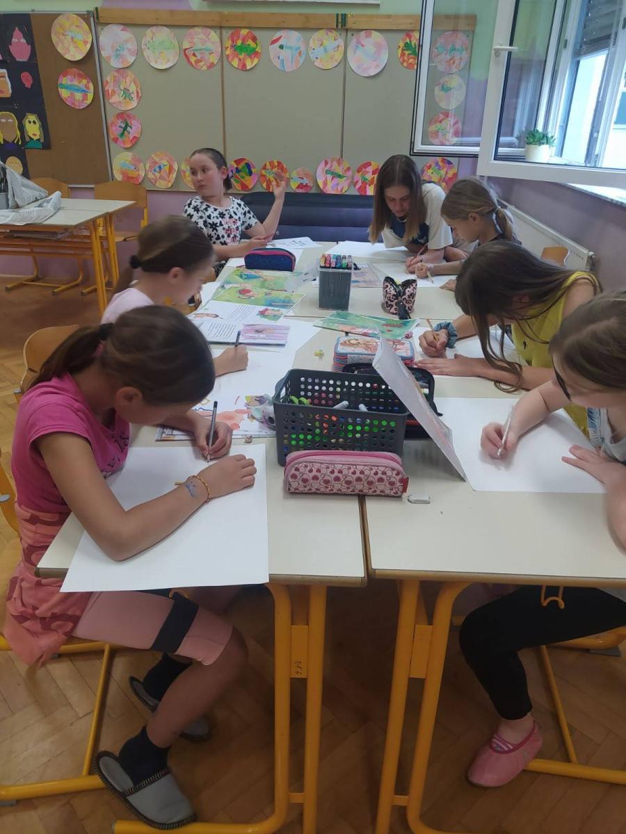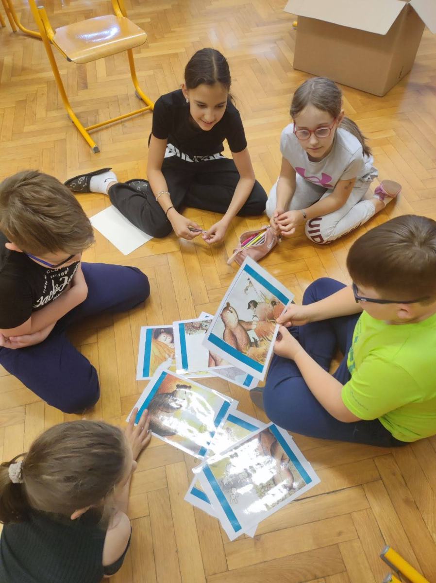 Bilo je super. Z našo skupino smo ob slikicah napisali zgodbico. Všeč nama je bilo, ko smo barvali lesene barvice ter ko smo barvali talne igre v atriju. Izza in Maruša, 6. in 5. b