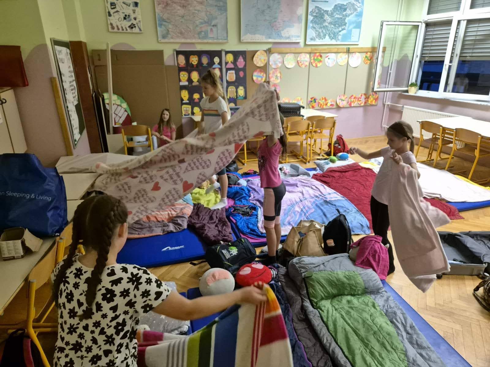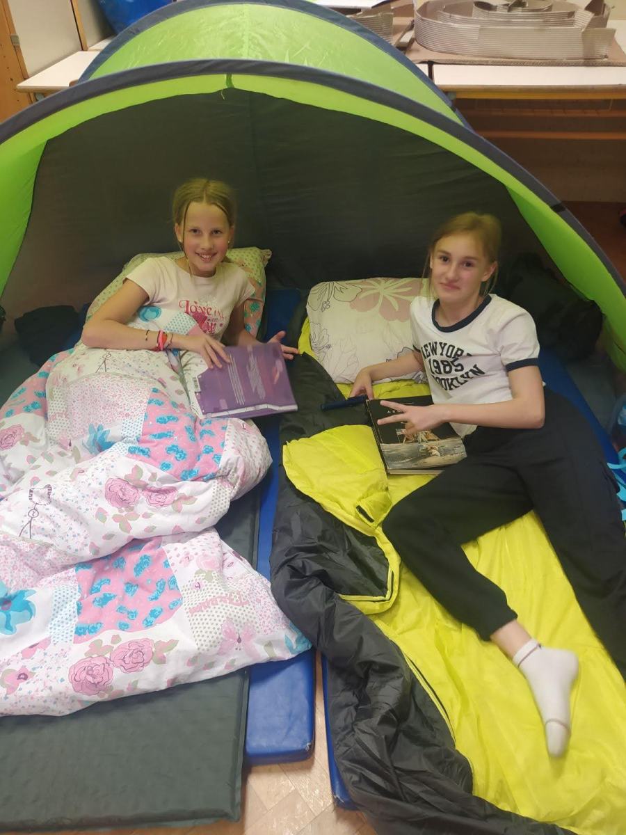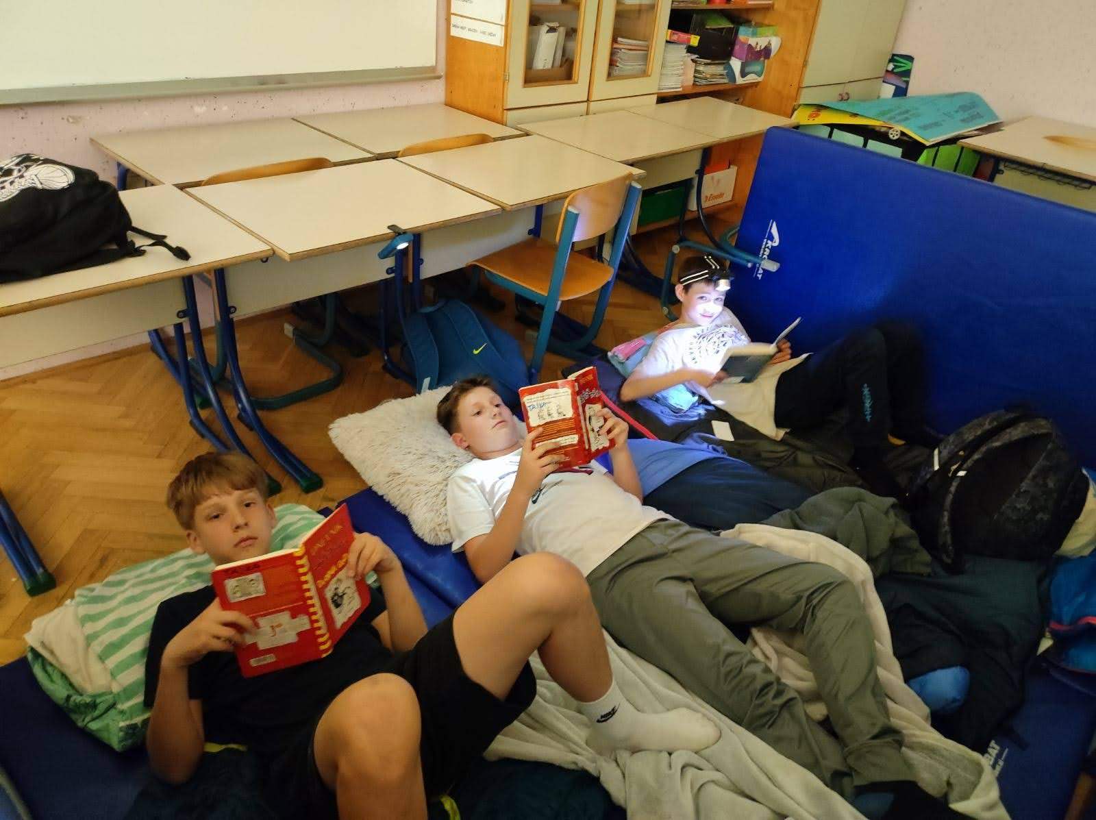 Učenci so v šolo prinesli knjigo, ki so podarili svojemu vrstniku in knjigo, ki so jo brali z bralno lučko pred spanjem. Najbolj so uživali, ko so si pripravljali učilnice za spanje, saj so si jih preuredili za spanje z blazinami in rjuhami; nekateri pa so celo vanje postavili prave šotore.