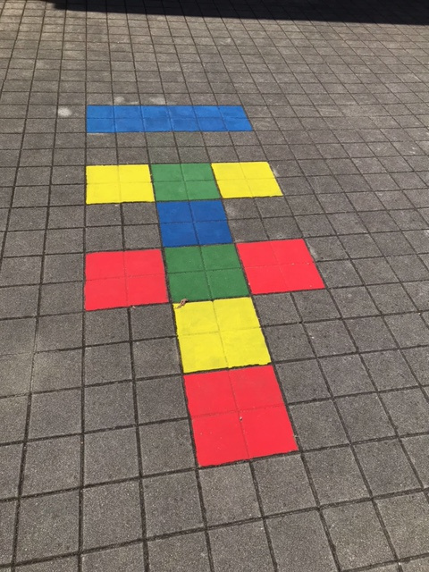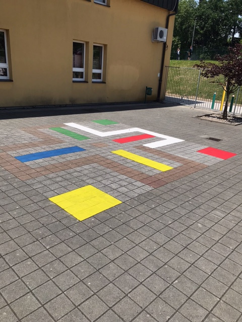 – poslikava tal z različnimi igrami v atriju šole, mentorica Tajka Šnuderl Novak,