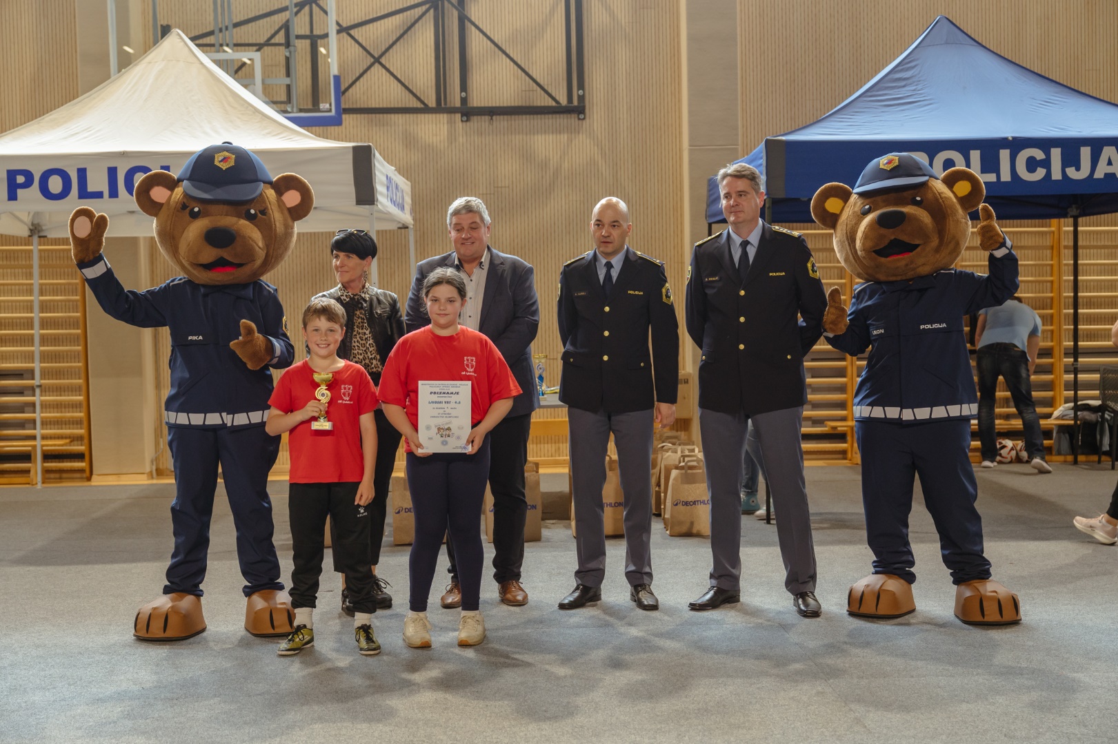 Med posameznimi nalogami smo imeli prosto in smo si pred dvorano ogledali policijske pse in konje, vojaške avtomobile, enoto prve pomoč, naloge carine in zasežene izdelke.